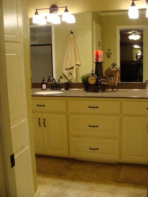 We took out the wall that divided the bathroom from the vanity area so it could be one big room. Here is the vanity area now.