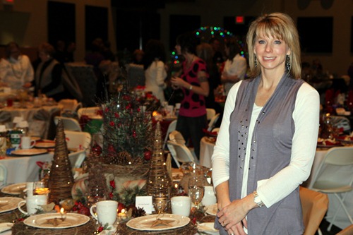 Hi. Thanks for joining me for the 2010 Christmas Tea. I will be your guide to show off some fabulous tables decorated so that women can share time together and remember the reason for the season.